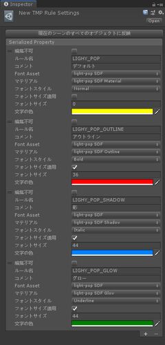 はじめに TextMesh Pro の設定をルール化して管理できる機能 「TMP Rule」を GitHub に公開しました バージョン Unity 2018.3.11f1 使い方 Project ビューの「Create > TMP Rule Settings」を選択します すると、TextMesh Pro の設定をルール化して管理でき…