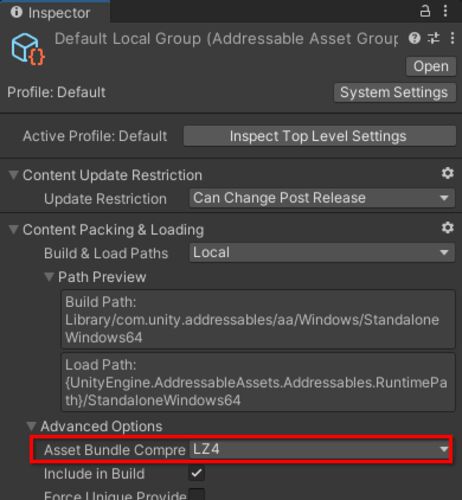 検証環境 Windows 10 Unity 2020.3.13f1 Addressables 1.19.11 検証方法 10,000 個の Scriptable Object を用意して すべての Scriptable Object にアドレスを割り振って Default Local Group に追加して Default Local Group の Bundle Mode を 「Pack Sepa…