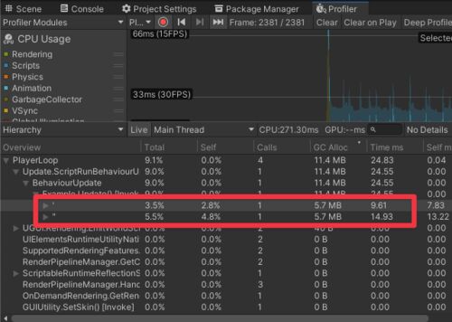 検証結果 検証用スクリプト using UnityEngine; using UnityEngine.Profiling; public class Example : MonoBehaviour { private void Update() { const string path = "Assets\\material.mat"; const int count = 100000; Profiler.BeginSample( "\"" ); fo…
