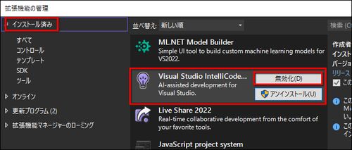 概要 Visual Studio 2022 で表示される「Tab 同意するには」を無効化したい場合は メニューの「拡張機能 > 拡張機能の管理」を押して 「インストール済み」を押して「Visual Studio IntelliCode」の「無効化」を押してから Visual Studio 2022 を再起動する …