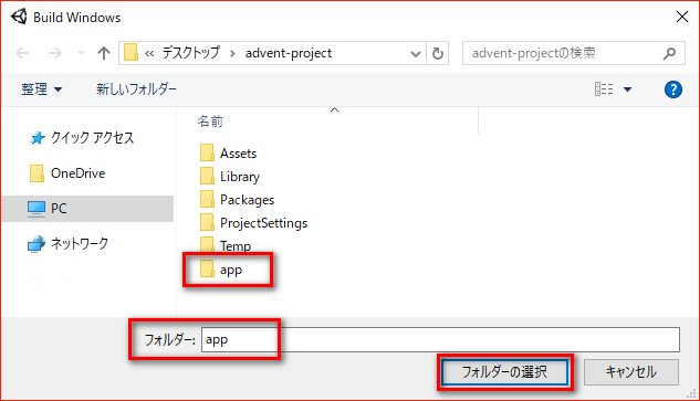 ビルドが完了して指定したフォルダの中に .exe が作成されたら準備完了です