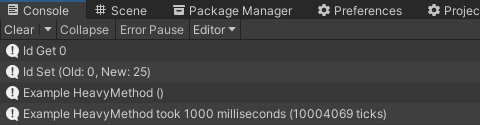 // プロパティの get や set が呼び出された時にログ出力されます // get が呼び出された時は戻り値がログ出力されます // set が呼び出された時は古い値と新しい値がログ出力されます [LogCalled( logPropertyGet: true, logPropertySet: true )] private int Id { get; set; }
