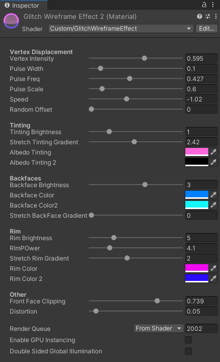 2022-07-01 【Unity】「Glitch/Wireframe Effect」紹介 Unity Unity - Pastebin Unity - シェーダ はじめに https://www.patreon.com/posts/glitch-wireframe-65951657 上記のサイト様で「Glitch/Wireframe Effect」が公開されています 使用例